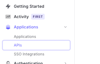 Now you'll go to your Auth0 account, navigate to "Applications" > "APIs" and create a new "API".